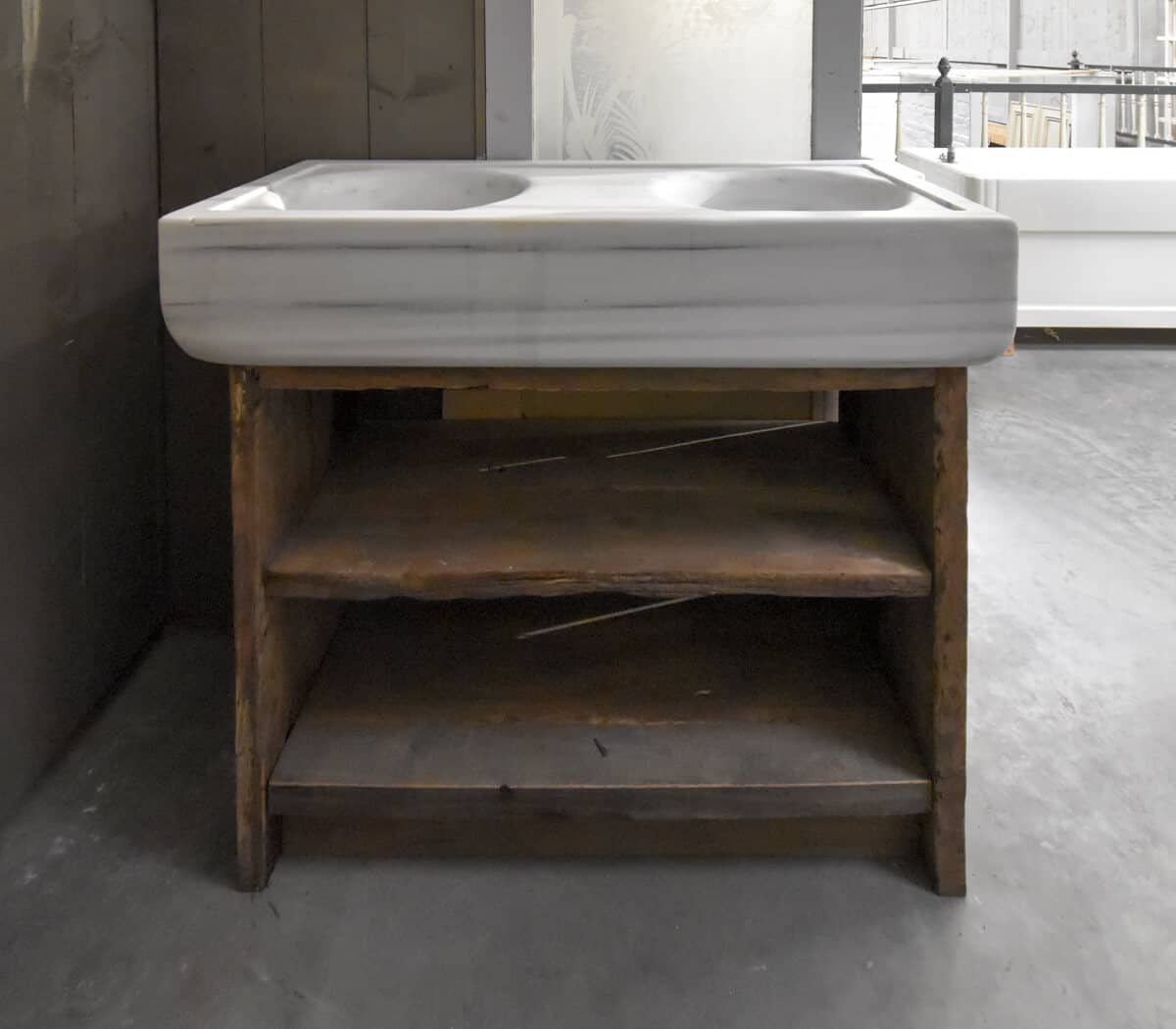 Badkamermeubel met eiken onderstel en Marmeren wasbak
