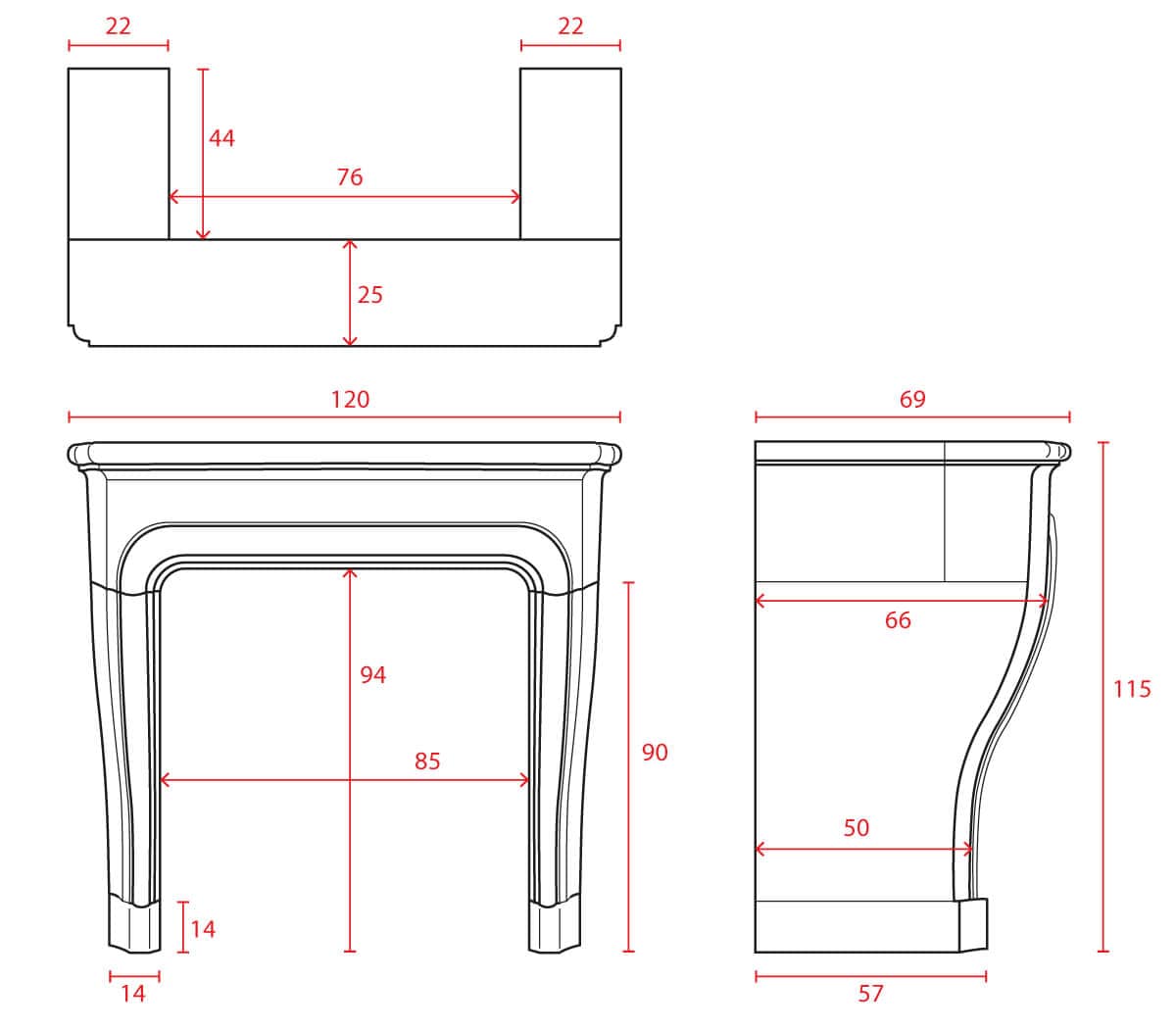 Type: Fireplace surround (around the chimney)