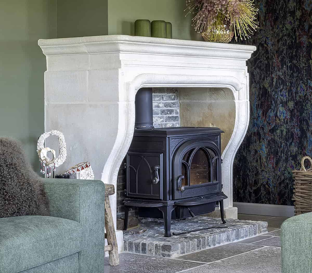 French limestone fireplace