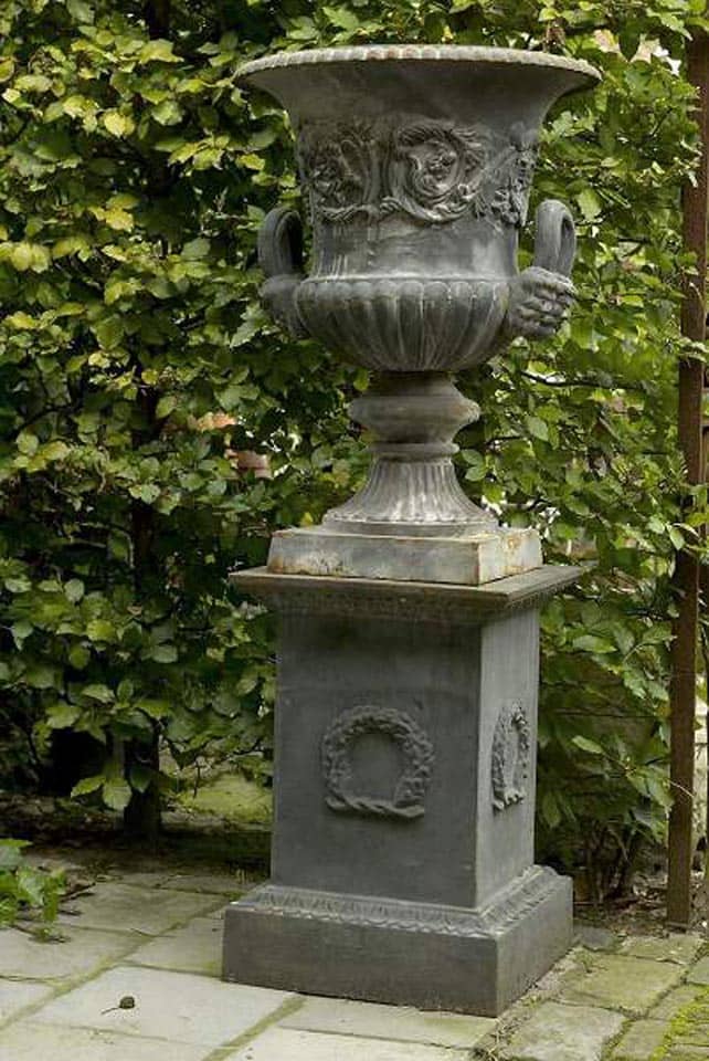 Gietijzeren vaas op sokkel