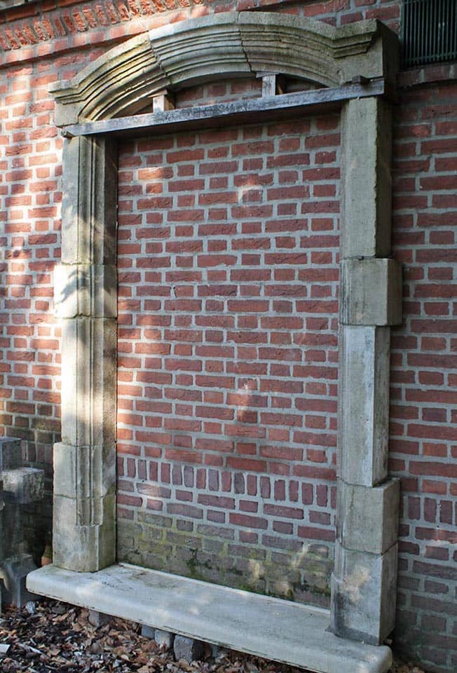 Oud portiek uit zandsteen gemaakt.