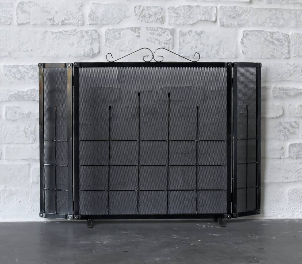 Fireplace screen, spark guard or fire guard. These vintage iron screens catch the sparks coming from your wood fire or are used decoratively with gas fires to make your fireplace complete.