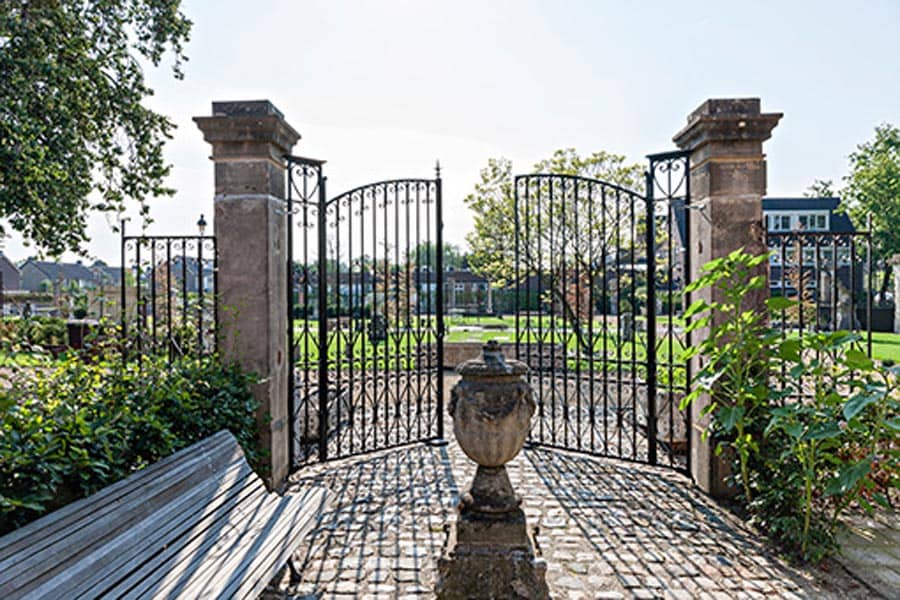 HomeVaas op sokkel voor een antieke poort met zandstenen zuilen