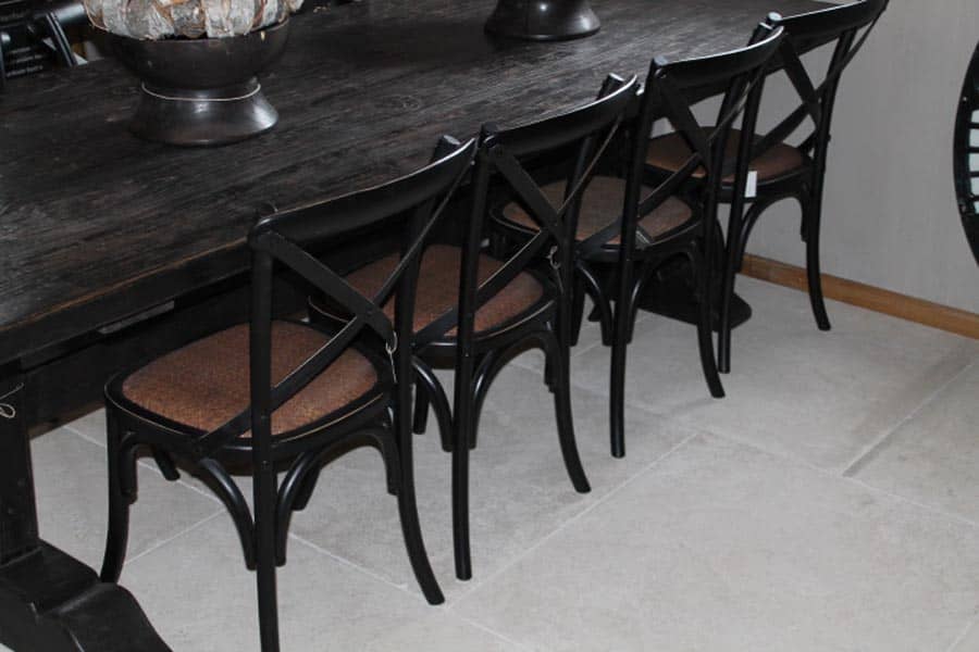 IJzeren beugels op de rug. Meerder kleurstellingen aanwezige, ook diverse andere modellen eetkamerstoelen.